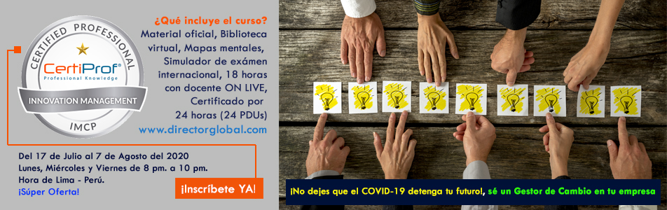 Director Global brindo un webinar gratuito, donde usted conocerá ¿Cuál es el perfil de un líder en Innovación? ¿Cómo un líder estimula a su equipo para generar valor por medio de la Innovación? y más...